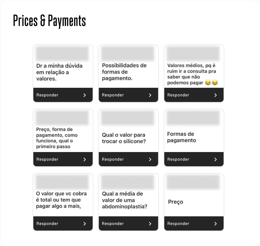 Together with the social media and marketing team, we used Instagram question stickers to collect doubts in a more spontaneous and quick way. I then organized these questions into categories to make the analysis easier.