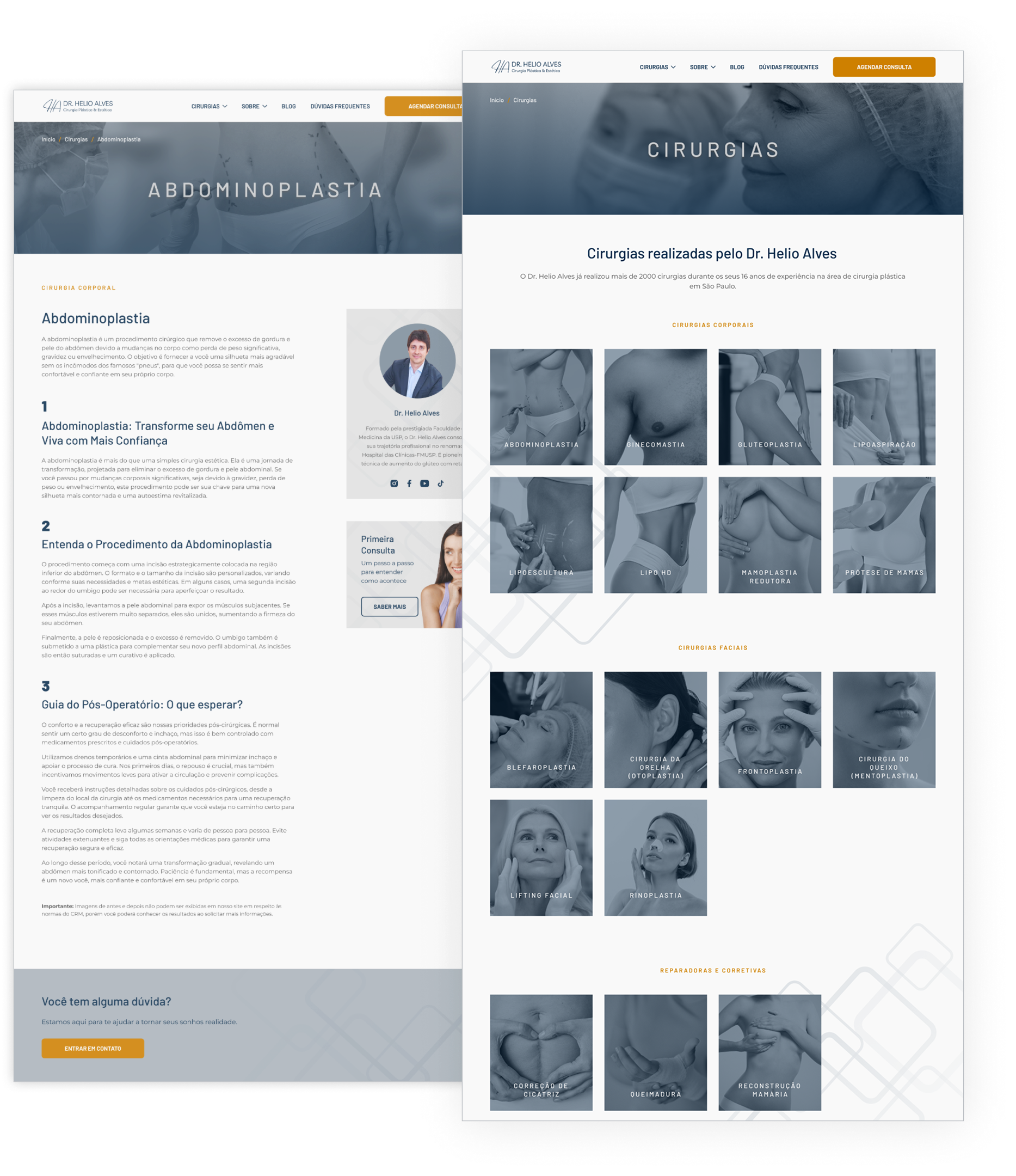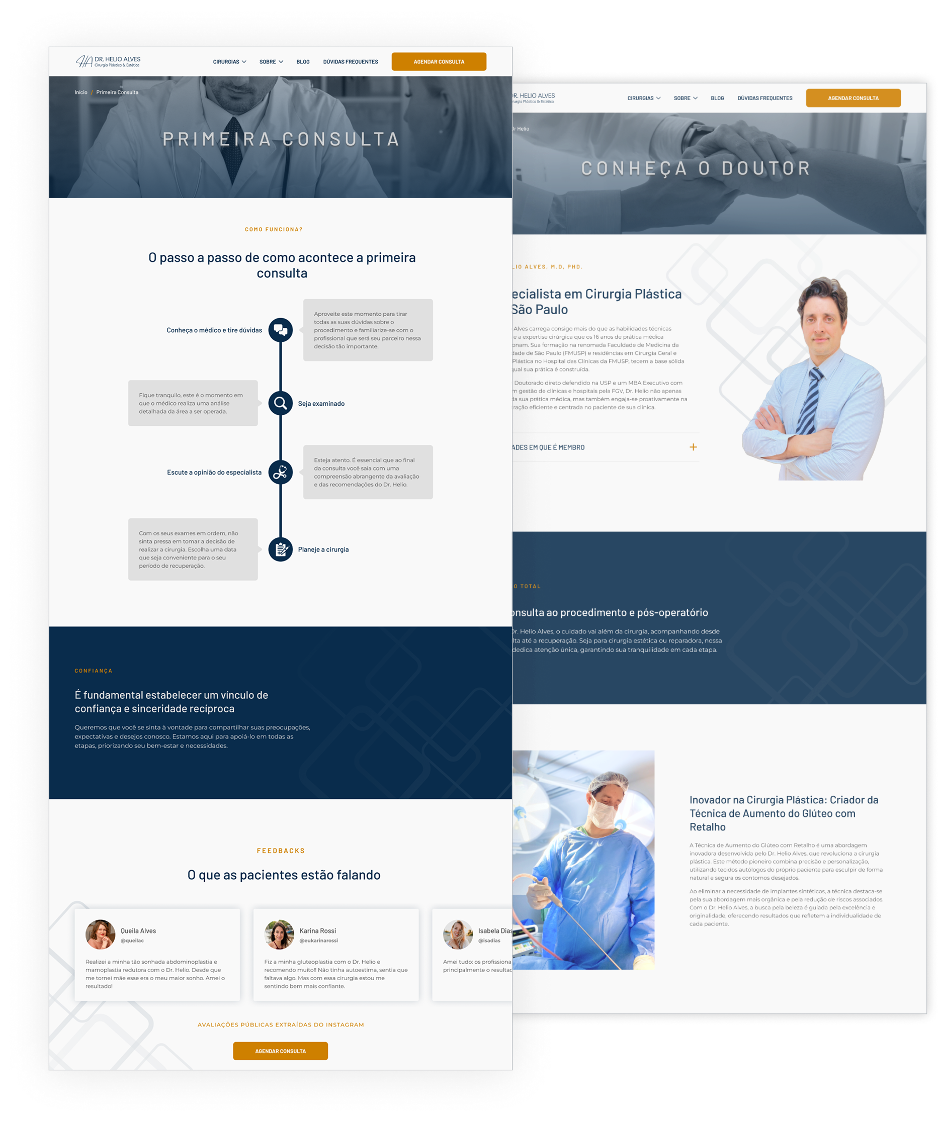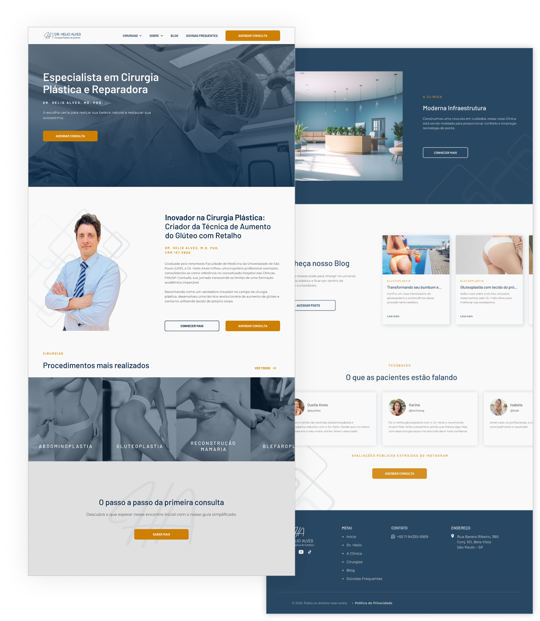 The doctor is a renowned plastic surgeon in São Paulo, Brazil, with 16 years of experience. Specializing in corrective body surgeries, his website showcases his expertise, attracts new patients, and provides detailed service information.
